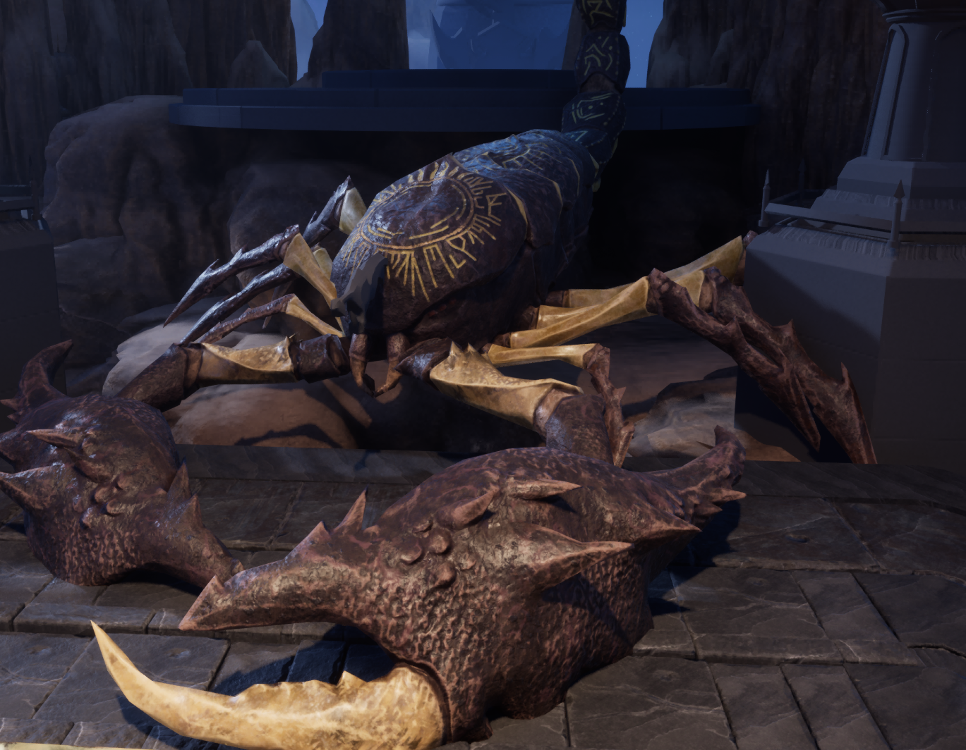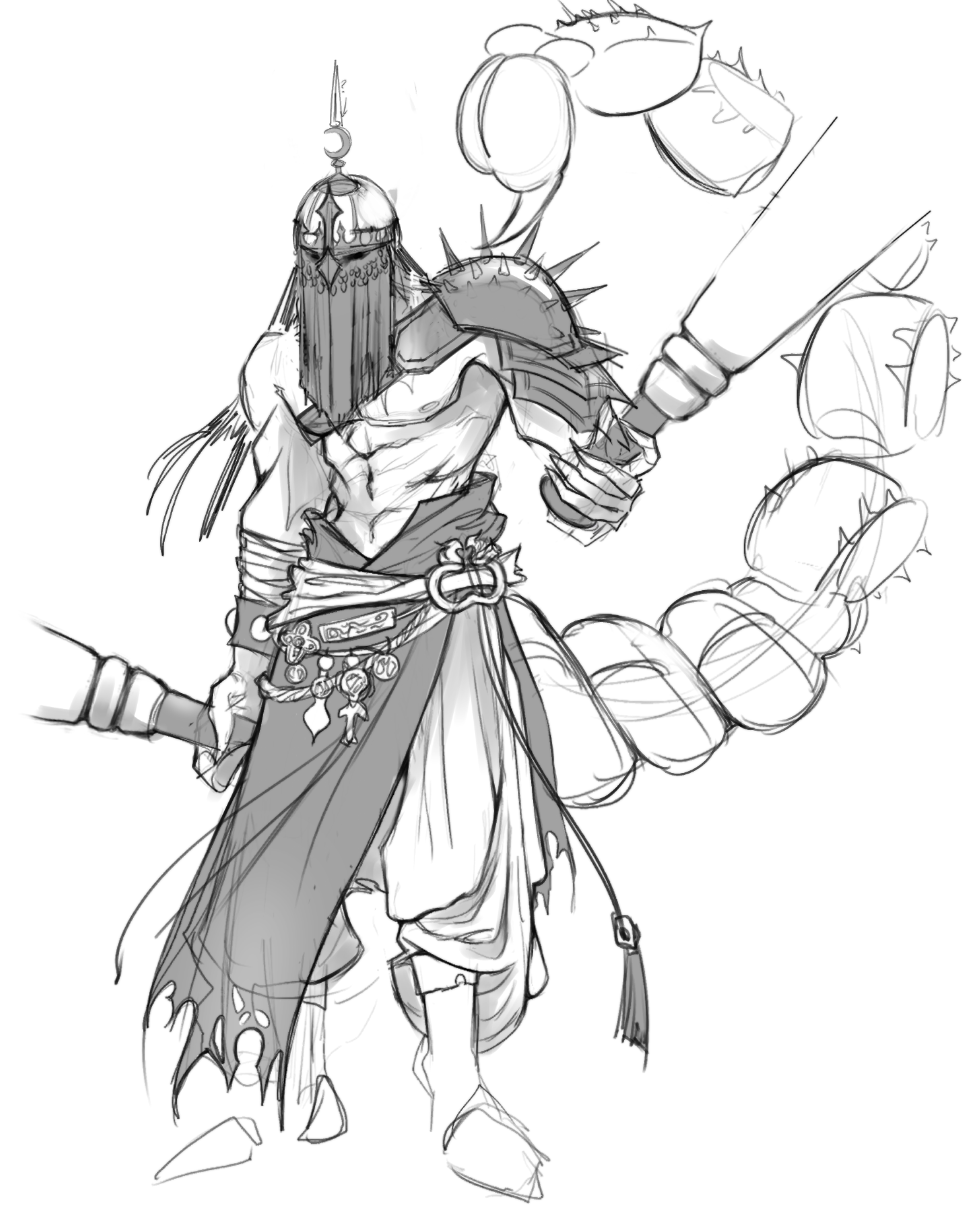 Karaam was designed to be aggressive and overwhelming, inspired by Consort Radahn from Elden Ring's Shadow of the Erdtree, but I wanted to balance that pressure with fairness and tie him directly to the setting. His weapons are Meels: Persian clubs that in real life require a long wind-up behind the body before the swing. That wind-up became a core part of his attack design, giving the player a visible, readable window to react. At 50% health, Phase 2 begins. Karaam reveals a scorpion tail, switches to a greatsword, and introduces poison stabs and a high-damage tail slam. The phase transition is designed to feel like a genuine escalation. The player who thought they had read the fight now has to relearn it under pressure, and the satisfaction of adapting to that is what the second phase is built around. After over ten weeks of playtesting, the hallway tutorial introducing the Sun and Moon system before the arena has consistently received positive feedback.